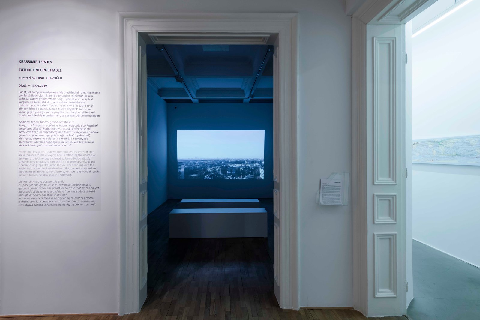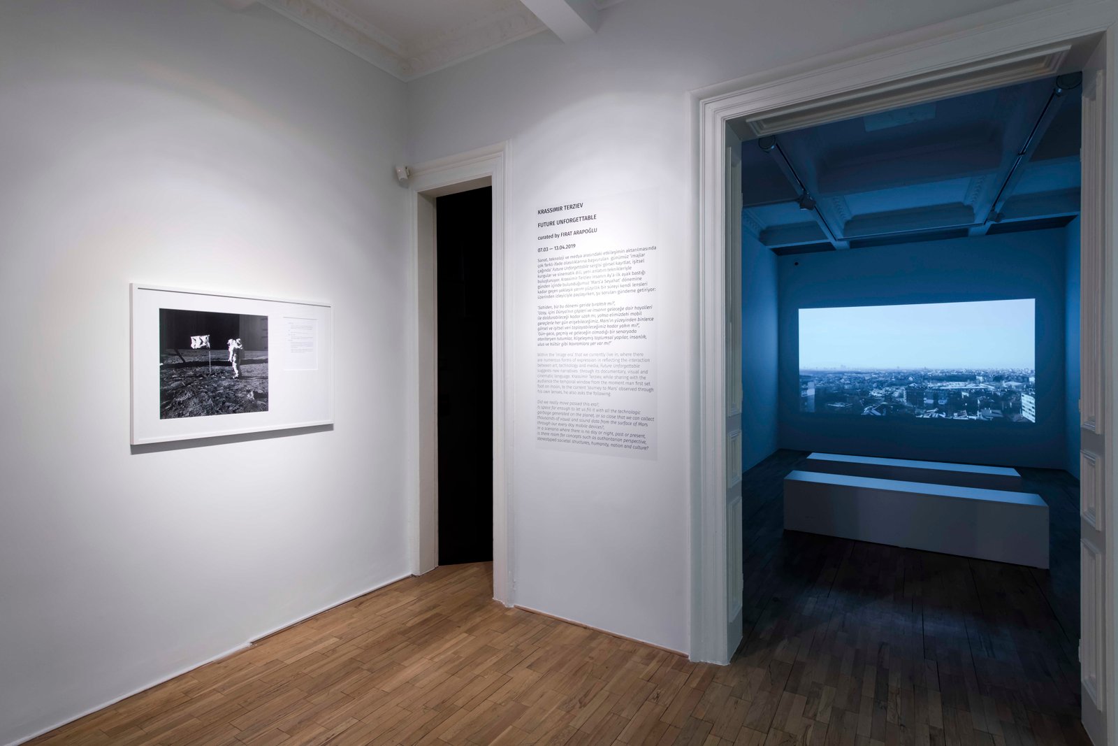 Within the ‘image era’ that we currently live in, where there are numerous forms of expression in reflecting the interaction between art, technology and media, Future Unforgettable suggests new narratives through its documentary, visual and cinematic language. Krassimir Terziev, while sharing with the audience the temporal window from the moment man first set foot on moon, to the current ‘Journey to Mars’ observed through his own lenses, he also asks the following: Did we really move passed this era? Is space far enough to let us fill it with all the technologic garbage generated on the planet, or so close that we can collect thousands of visual and sound data from the surface of Mars through our every day mobile devices? and In a scenario where there is no day or night, past or present, is there room for concepts such as authoritarian perspective, stereotyped societal structures, humanity, nation and culture?