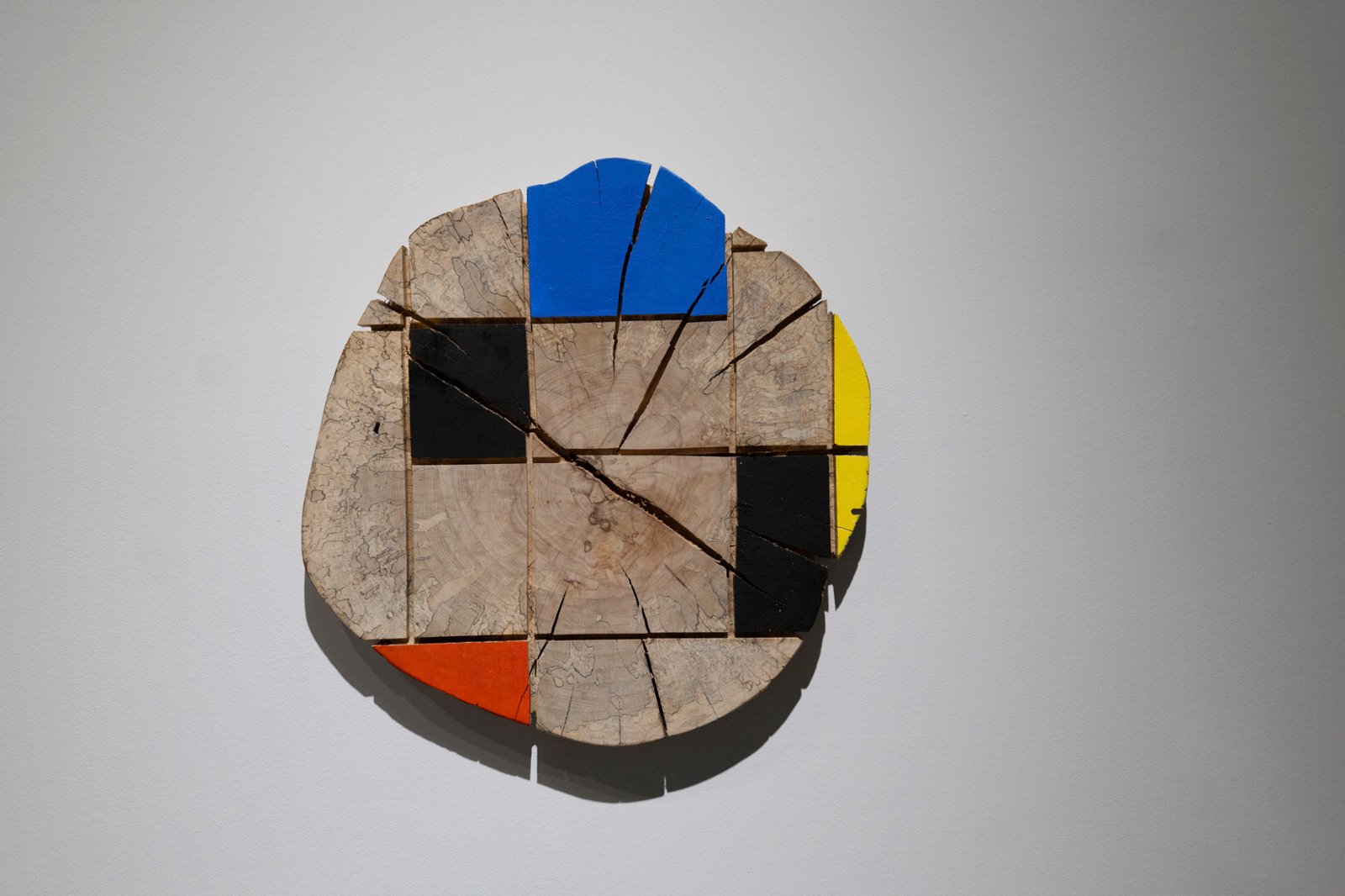 The tree is the central figure of the exhibition — materially, symbolically, and conceptually. The trunks brought into the gallery undergo gestures of decomposing, reassembling, and transformation that reveal the tension between the organic and the cultural regimes of structuring. One tree, chopped into firewood and reassembled with slight displacements, visualizes the interruption and reordering of natural growth and form. Another, shaped and polished into a mirror-like surface, turns the organic trunk into a site where the viewer literally sees themselves — a meeting point between nature and representation, between body and image.