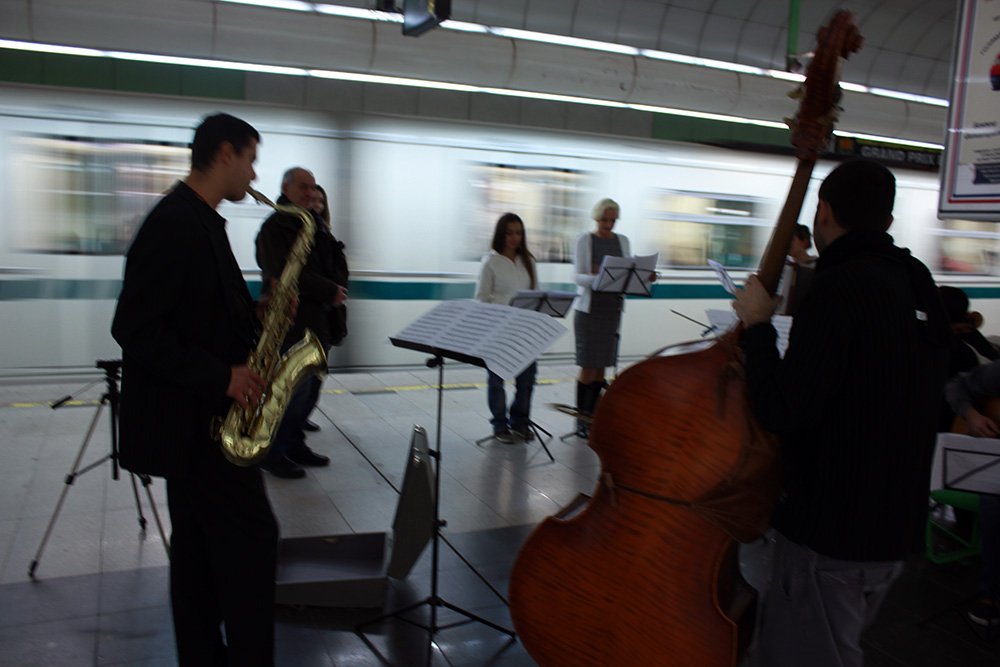 Метростанция Западен парк. Анасамбъл музиканти се събира в определен час на деня за да изпълни произведение със сюжет: епичните събития, свързани със световната финансова и икономическа криза от 2008-2012.