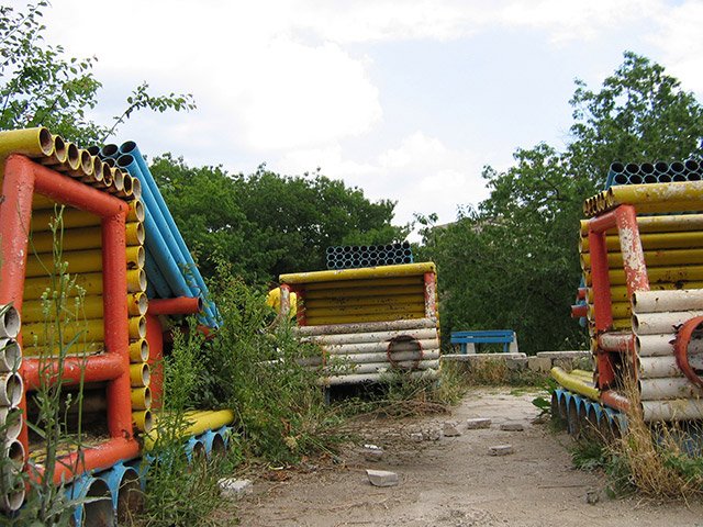 Парк за почивка в периферията на града, в работнически квартал. Уникална пространствена композиция – резултат от градското планиране и мисълта на социалистическият социален инженер. Странен коктейл от романтиката на изкуствените хълмове и стратегиите на бойните сражения. Добре организирани хълмчета са пресечени от изкуствени канали и езерца, свързани от носталгични дъгообразни мостчета. Акцентът на този архитектурен ансамбъл са армии от бутафорни танкове, катюши, бойни самолети и оръдия, инсценирани в ситуация на битка. Всички тези обекти са изпълнени на модулен принцип, от еднакъв материал – метални тръби, боядисани в основни цветове (жълто, червено, синьо). Това са „уреди за игра на деца” — една от причудливите останки на социалистическото градско планиране, присъстваща все още в ежедневието на обитателите на тази част на града.
