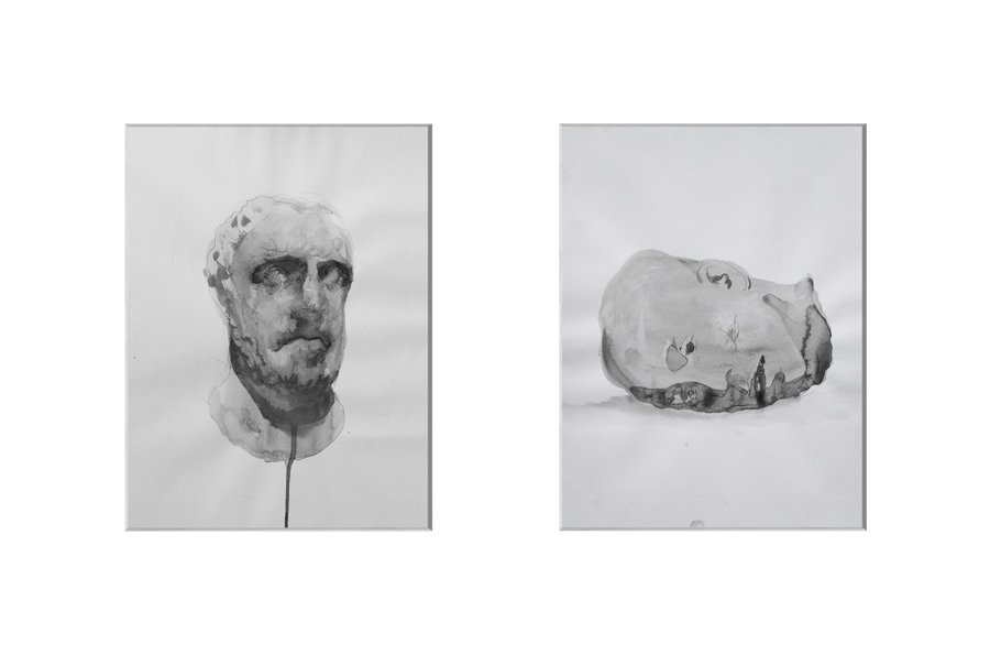 диптих рисунки, черен акварел, 30х20 см. всяка