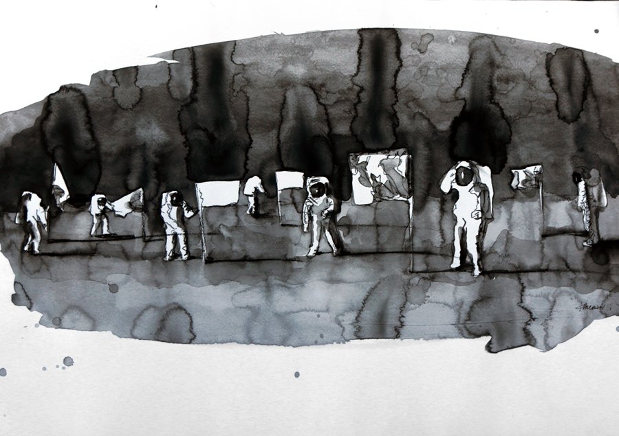 50/70 см, туш, черен акварел, пигментен маркер в/у хартия