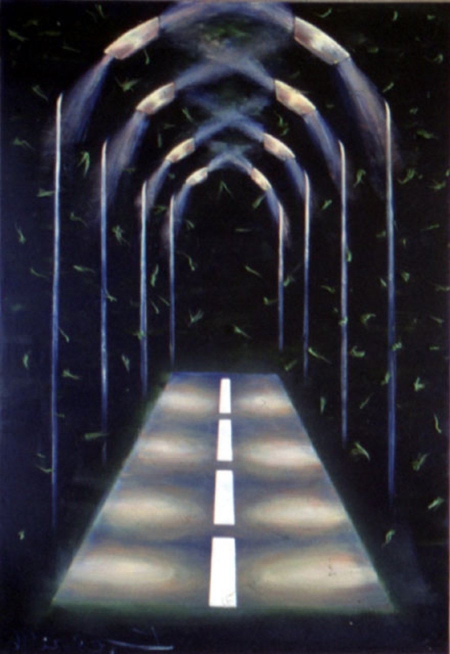 Light (1998) oil/canvas/rug, 3 x 100/80cm