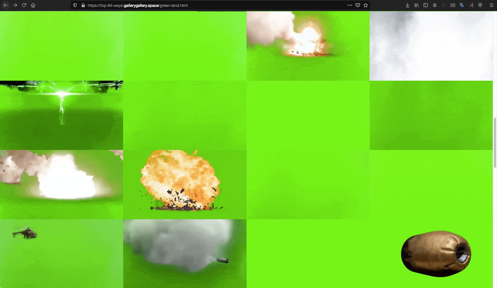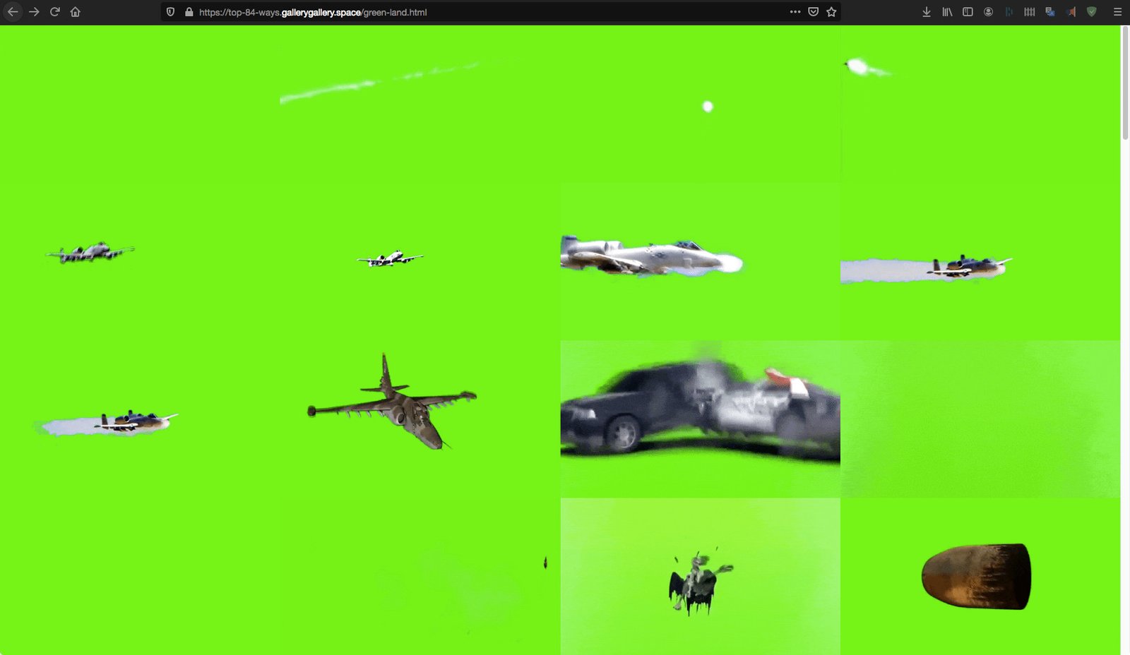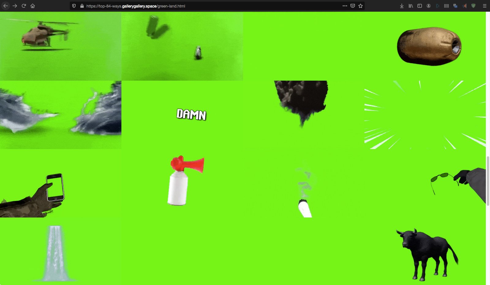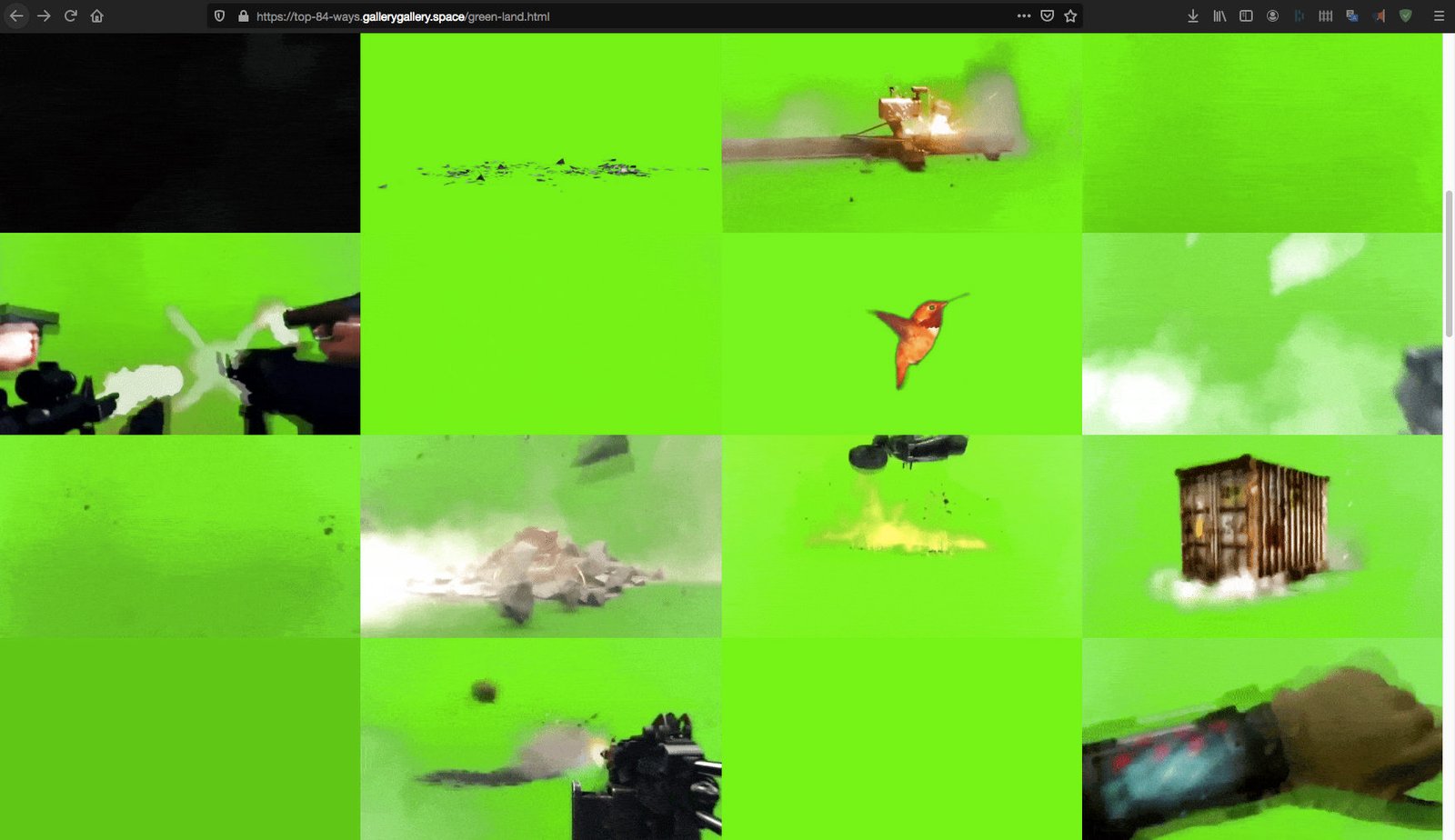 Неговата последна работа „Вашите 84 най-добри начина да станете по-зелени у дома“, създадена специално за галерия „Галерия“, е дигитален гоблен, който се състои от 84 стокови видеа на зелен екран, всичките показани паралелно в безкрайна повторяемост.