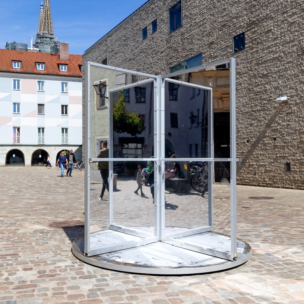 - четирикрила въртяща се врата, стомана, алуминий, огледало