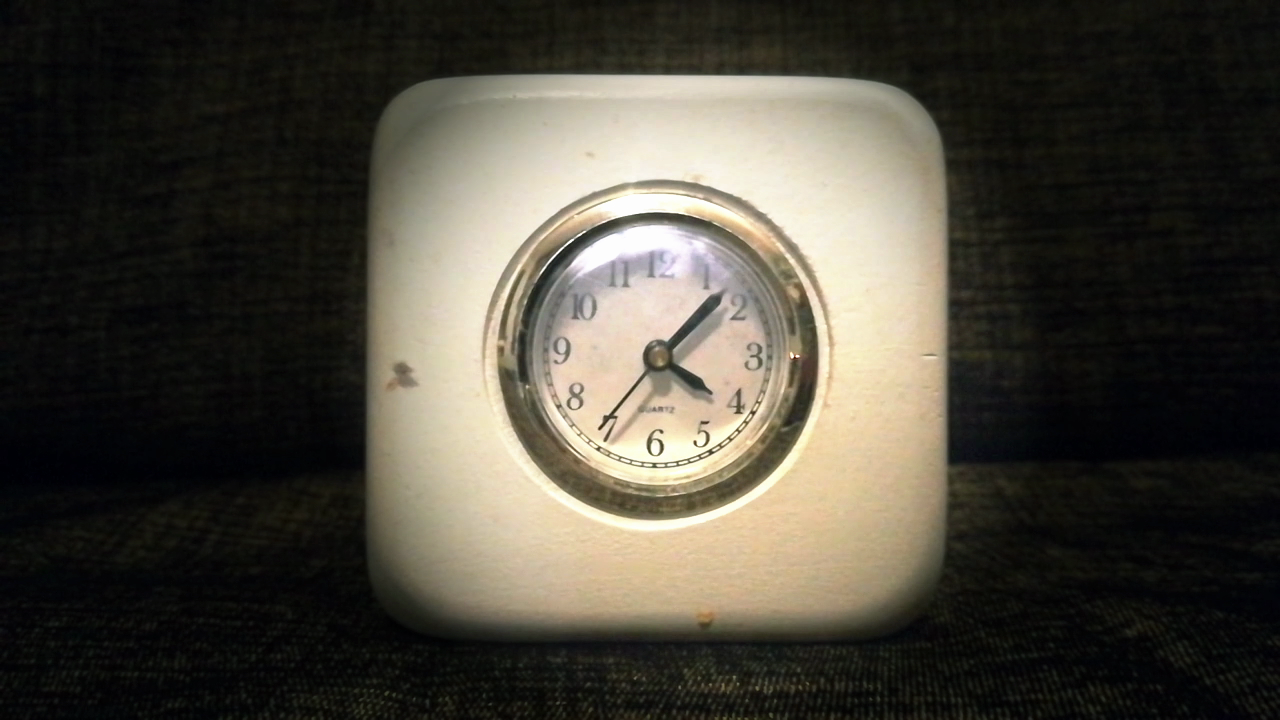 Кратка сцена, заснета случайно в момент, когато часовникът вкъщи отчаяно се опитва да изпълни обичайното си предназначение, но няма сили да го направи и изпълнява несигурни цикли от няколко секунди напред и назад.