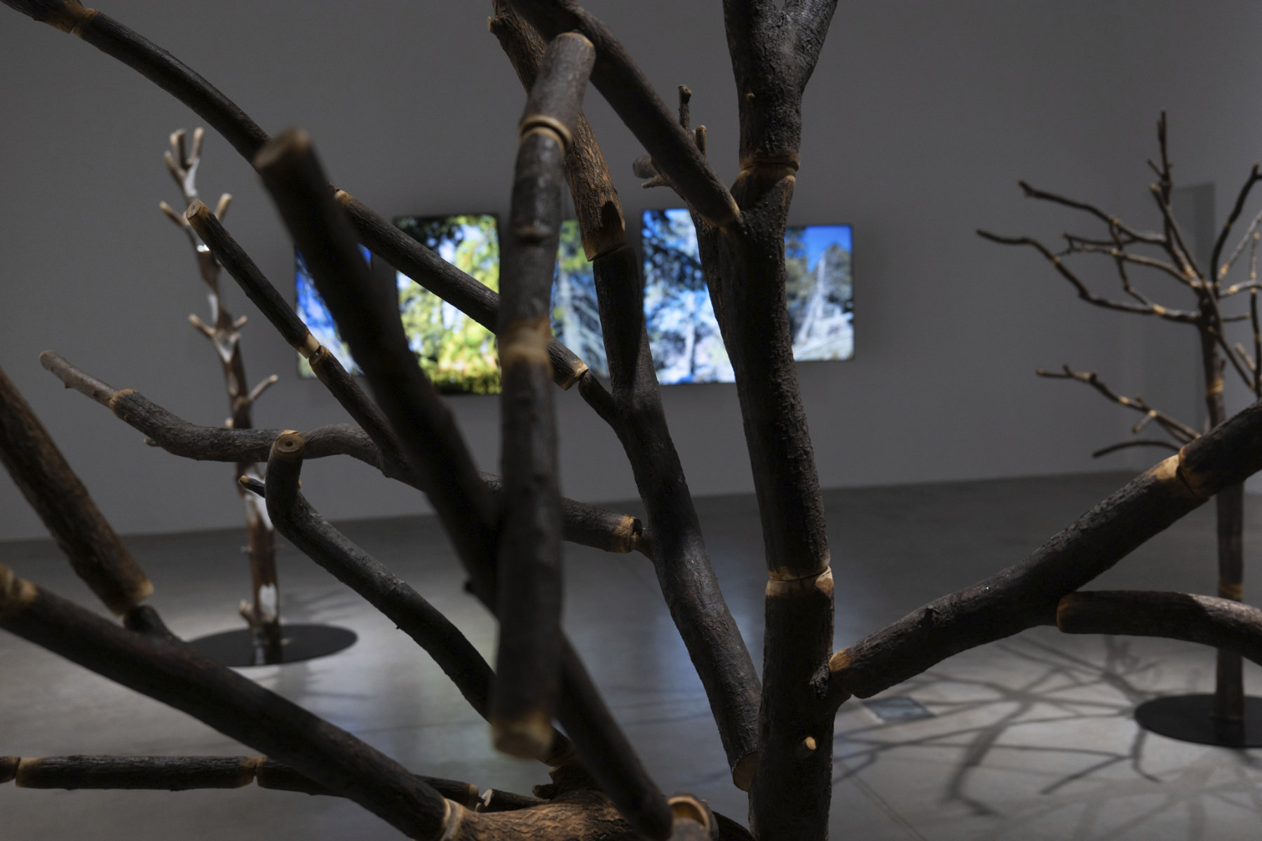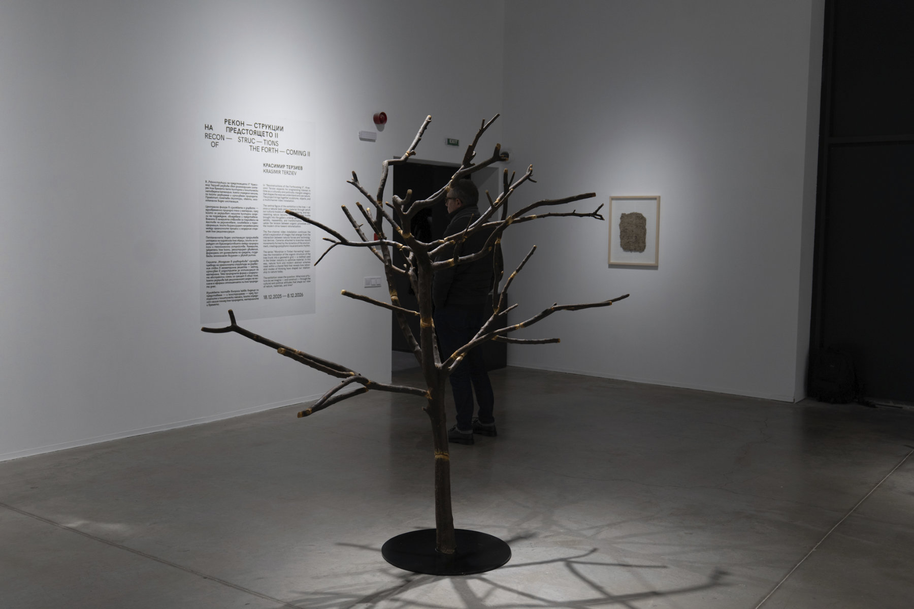 Дърветата, внесени в галерията, претърпяват жестове на раздробяване, повторно сглобяване и трансформация, които разкриват напрежението между органичния и културния режим на структуриране. Едно дърво, насечено на дърва за огрев и повторно сглобено с леки размествания, визуализира прекъсването и пренареждането на естествения растеж и форма.