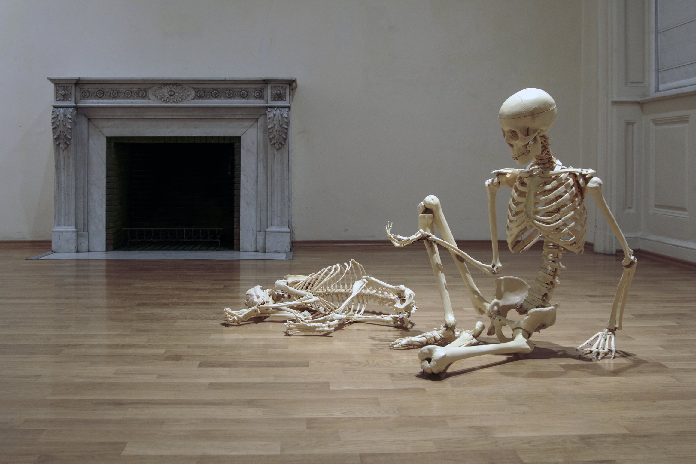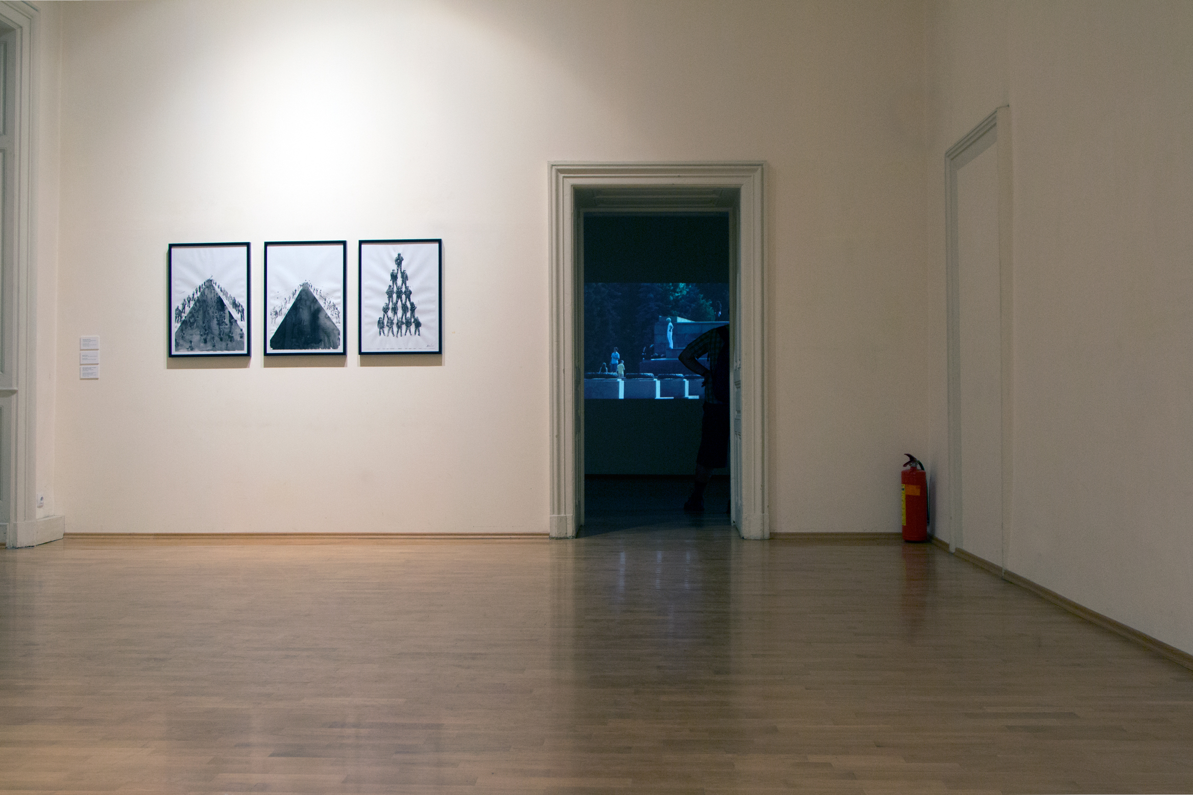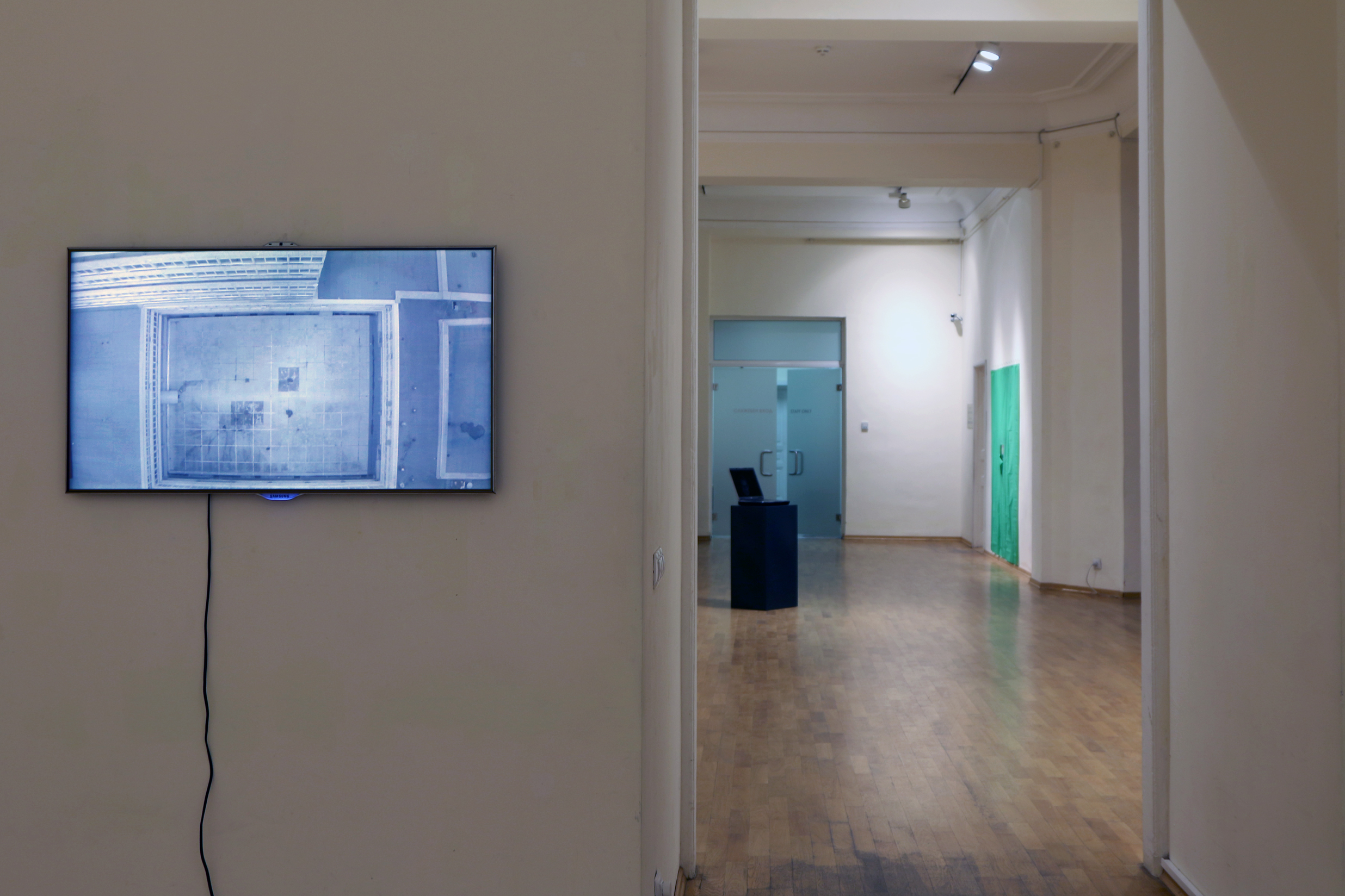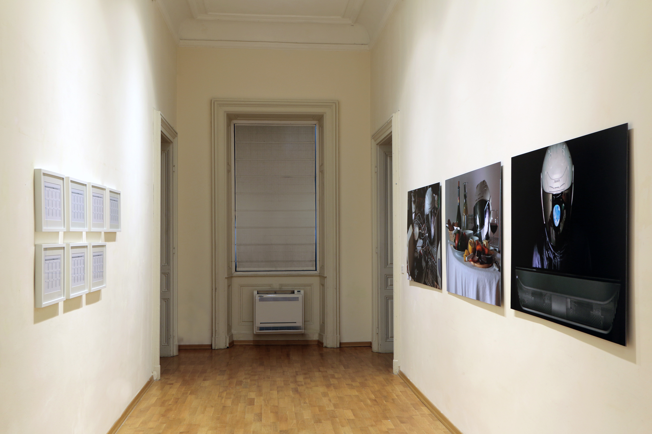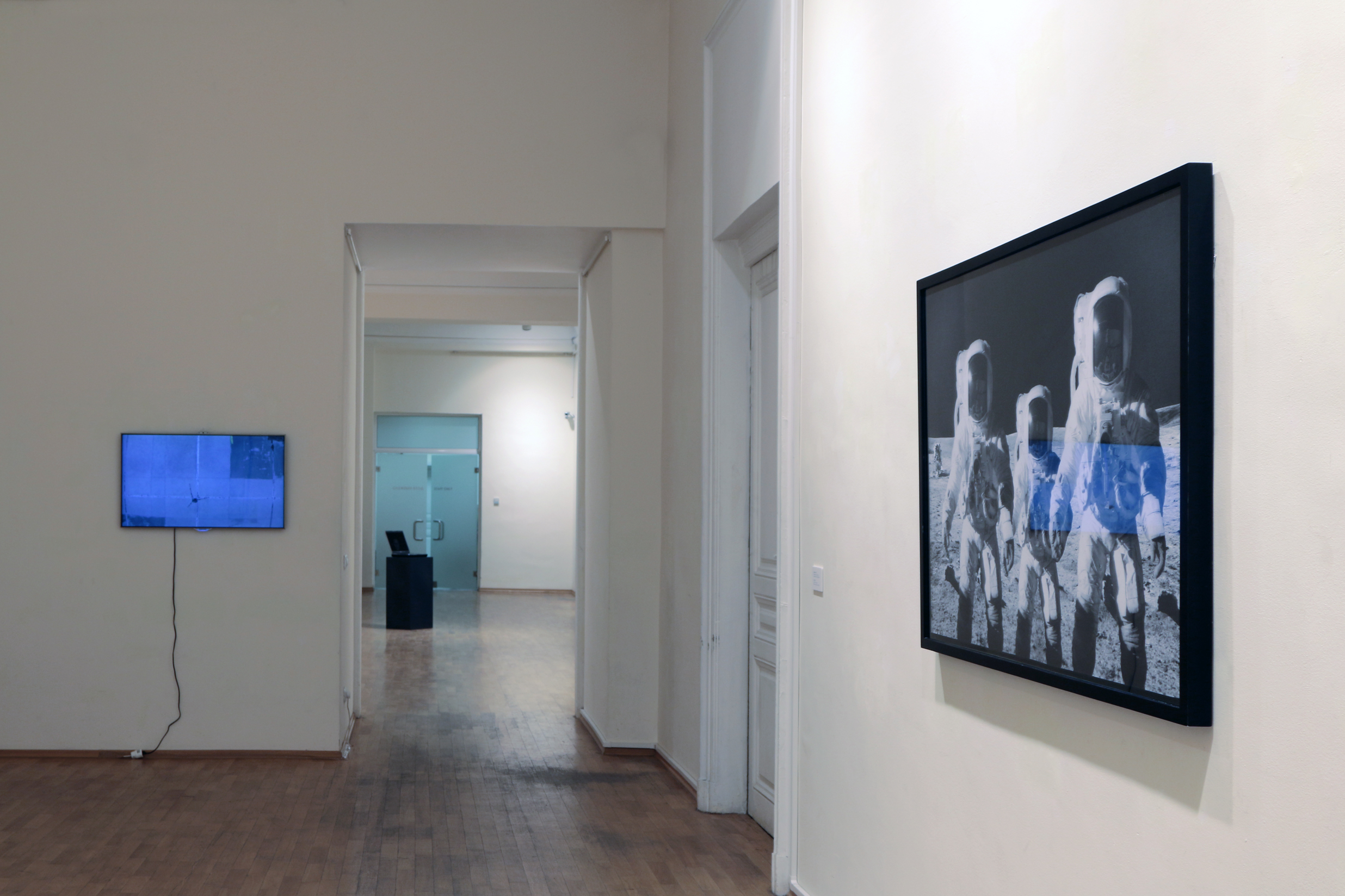The title of the show is a hint that the exhibition is located in a kind of present unavoidably infiltrated by scenes, images and ideas coming from the past as well as the future. There was a time when we were rela-tively sure to accept the sequence of time flowing in one direction – the past comes before the present and after the present there comes the future. We could not be sure anymore of all that after the virtualization of the world and the expansion of the digital image. This exhibition project is showcasing a selection of works using a variety of means and approaches in order to ask questions around the production and circulation of images, as well as regimes for their perception and economy today. The works of Krassimir Terziev are full of hidden quotations, references, familiar imag-es and motives so that they communicate directly with the everyday life. A point of departure is the video installation “A film” (2004) – a quasi-historical drama with no narrative where 50 extras, dressed in historical costumes from the requisite of the Boyana Film Studios in Sofia, are pointlessly hanging around the cinematic set up while waiting for the “Action!” call. “Monu-mental” (2011) is a video where the camera is observing from a distance group of youths loitering around the area of the Monument to the Soviet Army in the center of Sofia while being completely ignorant of the ideological “weight” of that space. “Domestication. The first five thousand years” (2014) confronts the viewer with the figure of a dog who has left the world of the living a long time ago. Works from the last few years come next and they are dealing with recognizable hard- and software forms and screen images. “Just like water, gas and electricity come from far away…” (2011) is a cycle of color photographs representing scenes from the daily life of an amateur astronaut. “Family” (2015) is trying out a hypothesis to have family life on the Moon while the “Monument to Time elapsed” (2013) is bringing us back to the problems of memory though this time around the part of the imaginary monument is played by a laptop whose life is over.