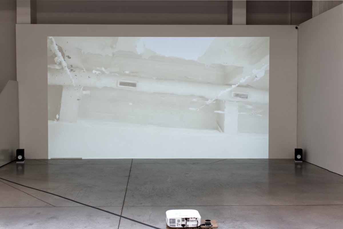 At the center of the current exhibition is the computer-generated video “A Walk into the Gallery”. Stemming from entropy (the second law of thermodynamics) according to which all ordered things in nature tend towards destruction, towards chaos, the artist presents us the gallery space in a supposed future moment of advanced entropy.
