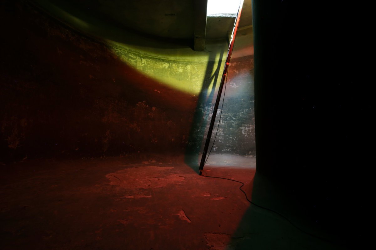 The project of Zhelko Terziev and Krasimir Terziev includes almost entirely new works, created with the thought of the specific space of the water tower, where the angles of the white cube are displaced from the radius and the spiral of constant vertical descent and ascent, and the original functions of a technical facility have retreated to the aesthetic effects of this type of strange architecture that is no longer connected with water but with excitement.
