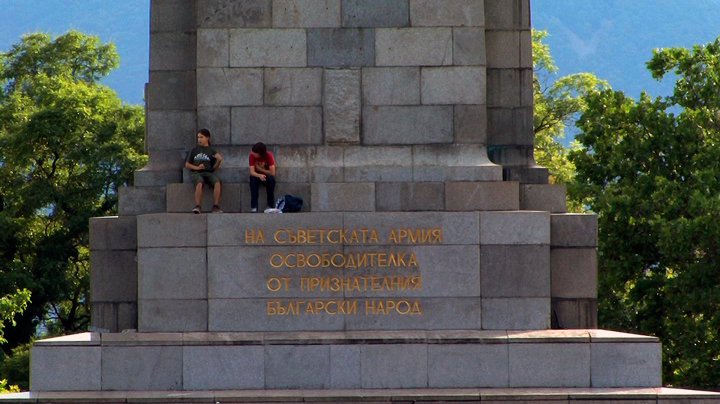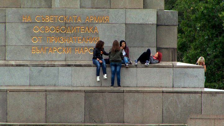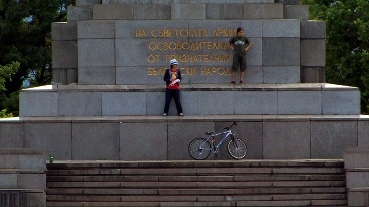 "In his video Monu-mental from 2011, artist and visual anthropologist Krassimir Terziev observes a public space that is popular among Sofia’s youth, namely, the Monument to the Soviet Army. Throughout his artistic research, Terziev investigates the role of urban space in cultural and socio-economic practices, as well as the presence and absence of memory in the spatial praxis of the city’s inhabitants, i.e. how people use and appropriate public space. Monu-mental shows us how the dilapidated monument has become a fixture in the urban structure of the city, where its residents have colonised the site in habitual ways and, by doing so, turn them into personalised memories. Terziev combines the rather opaque visual scenes with added audio samples taken from drama films, implanting an ambience of tension into his work. Despite the undeniable physical presence of the monument, its ideological aura has been emasculated, its inscriptions of power rescinded, and thus, rendered absent. This juxtaposition of presence and absence, of dramatic sonic codes and mundane imagery, creates an atmosphere of suspense; this is a site where anything can happen."