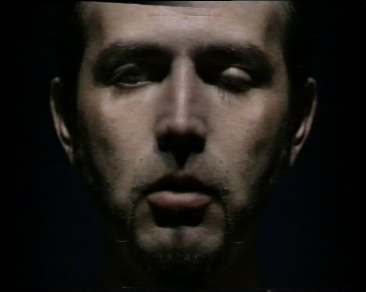 After shooting the video and sound is digitized and reversed in time from the end to the very beginning and output as a separate sequence. The two video sequences are edited in one screen split vertically on two symmetrical parts (left/right) and printed on one tape. The normal speed video sequence is displayed on the left part of the screen and the reversed speed sequence is displayed on the right part of the screen (or vice versa). In this way again a whole face is reconstructed, as the deconstruction is recognizable only following the face mimic in the time passing.