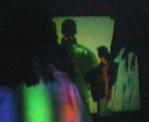 The installation consists of 6 layers/ 5 adjacent rooms. Room 1. Projection on the wall - video loop: a peaceful landscape, panorama, and the figure of a man (the author) standing with his back to the audience. Silence. The figure turns slowly to face the audience and says, "Don't look at me. The camera is working. Don't stand like that." On the wall opposite the projection a surveillance camera is installed (the parameter of the vision is that of the wall projection). The camera transmits the image of the visitors in front of the projection (landscape) to the next room on a video-beam projection on the wall. There is another surveillance camera installed in the Room 2 opposite the wall projection that transmits the vision of Room 2 to the next room and so on and so on. Till Room 5. In this way the images are layered one over the other so the visitor from the first room is already a projection on the wall of the 2nd room but in the 3rd he is a projection of a projection and in the last image it is not clear any more where the people in the image come from, who is watching who, what is the original, and where multiplicity begins. The last image is transmitted on the Internet site - a simulation of a police line-up - accompanied with a text: "Point him out. Don't worry - they can't see you."