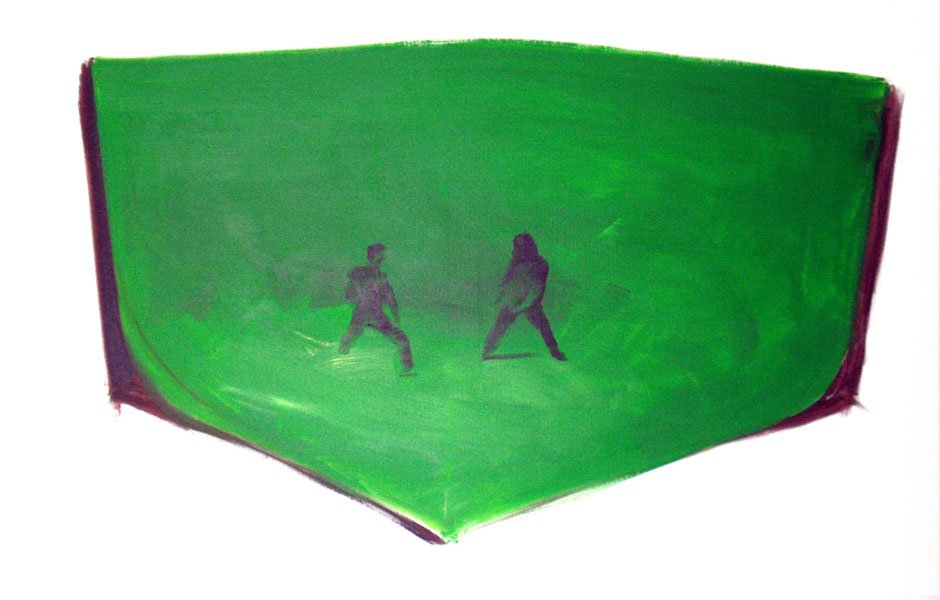 The series is based on real or imaginary film scenes. It is a study on representation and perception where film imagery is stripped bare from its continuity and original context and becomes a source for free references. When the original subject matter is distorted in the process of translation of the image a new interpretation is invited.
