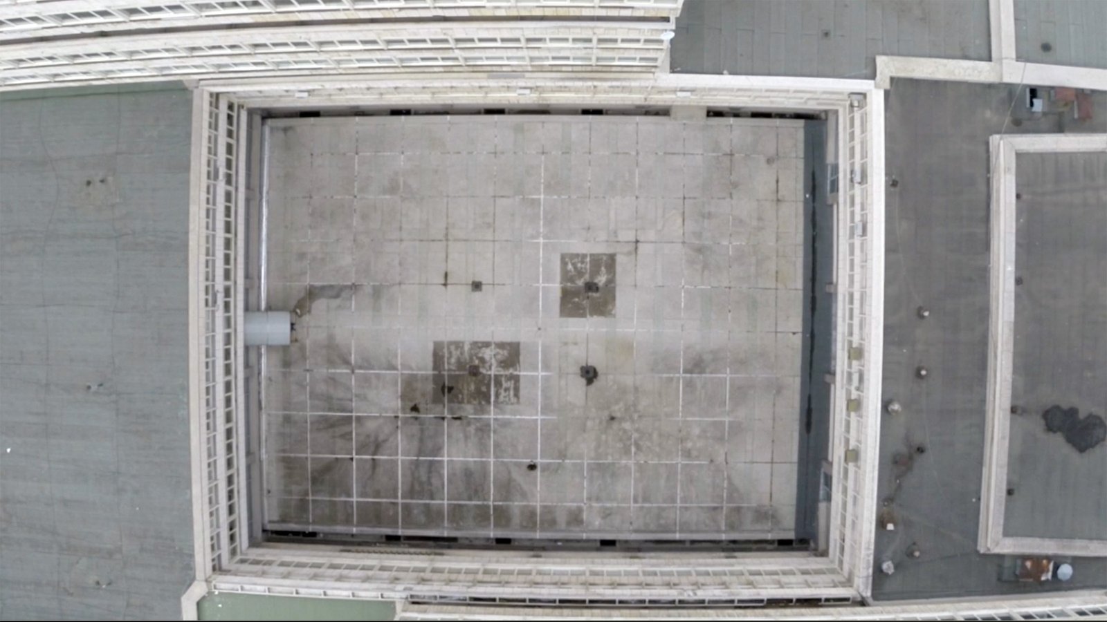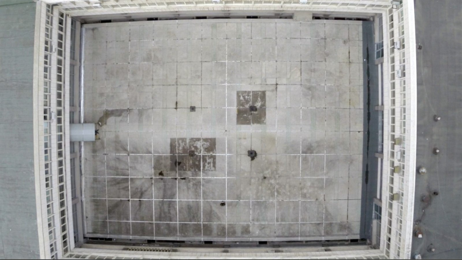 Two cameras monitor each other persistently. One — turned directly up to the sky, fixed on a tripod, placed in the centre of an internal yard (the University of Architecture in Sofia), while the second, turned down to the ground is attached to a drone that draws a vertical take off above the spot of the tripod, and landing back, trying to maintain as long as possible the vertical axes of movement. The views from the two sources alternate with various frequency in the process of editing.
