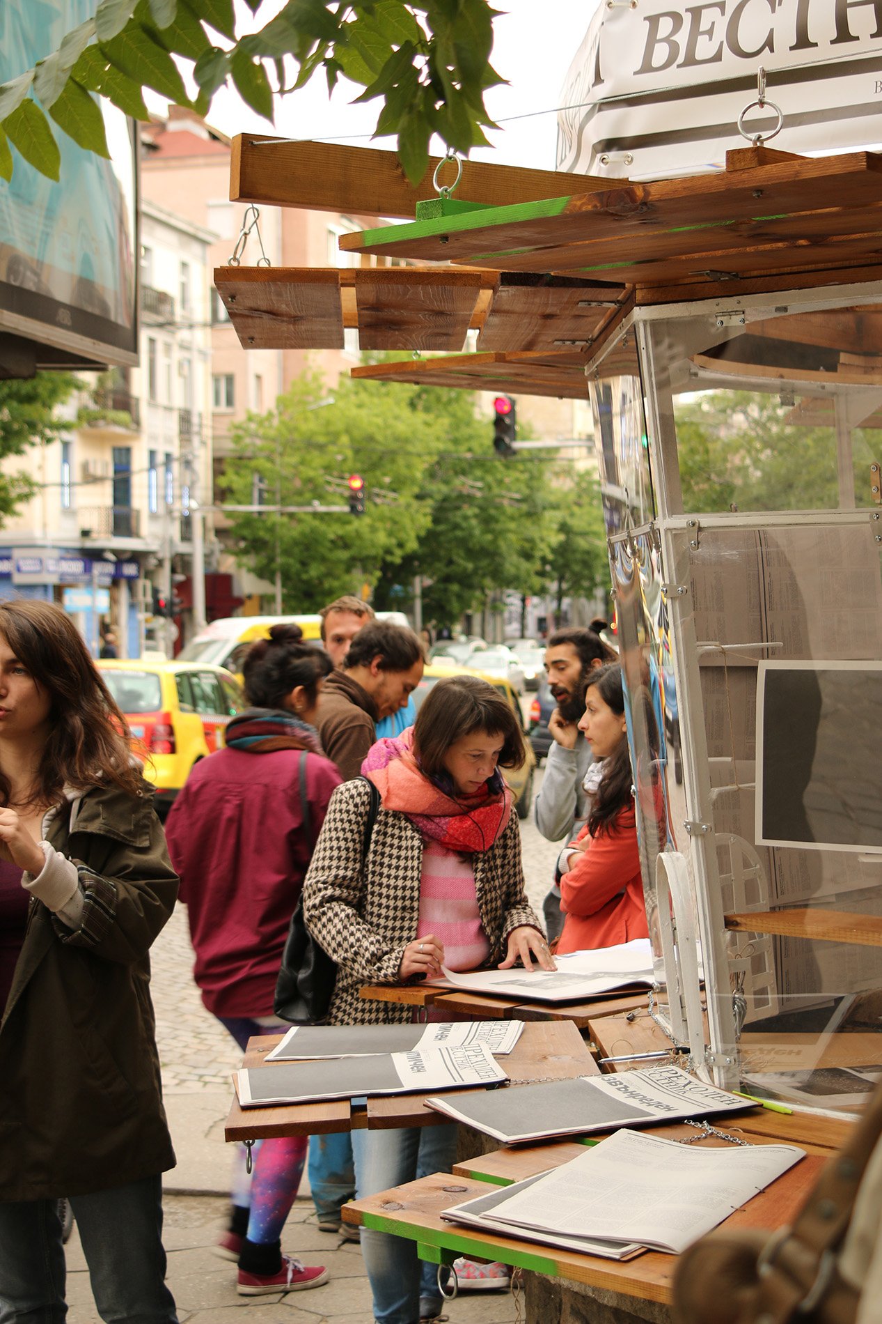 Krassimir Terziev. transitional newspaper, May 17 - Jun 20, 2016, newspaper kiosk / Dondukov Blvd, Sofia. For one month the kiosk was opened daily with regular working hours offering the transitional newspaper to the regular passers-by.