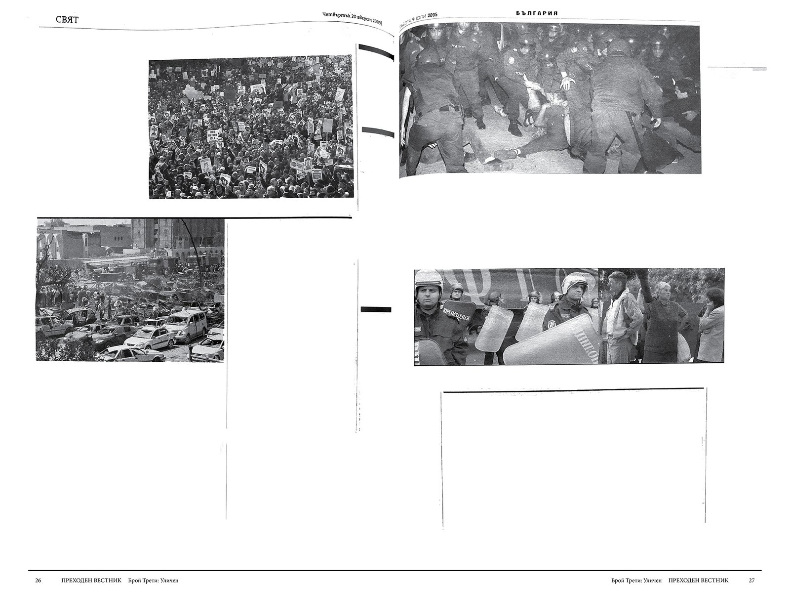 The approach is experimental and tests the impact and communicability of photographic images disseminated by the press, when left without explanatory texts (headlines, article texts, image captions, etc.). In other words, the question transitional newspaper sets is: what do we understand, remember, or we can recover as an image of places and events from the recent past (i.e. the so called transition period that began in 1989 in Bulgaria) transmitted only by photographs. The transitional newspaper aims to make visible how, in what circumstances and to what ends the media depict “ordinary people” in photography.