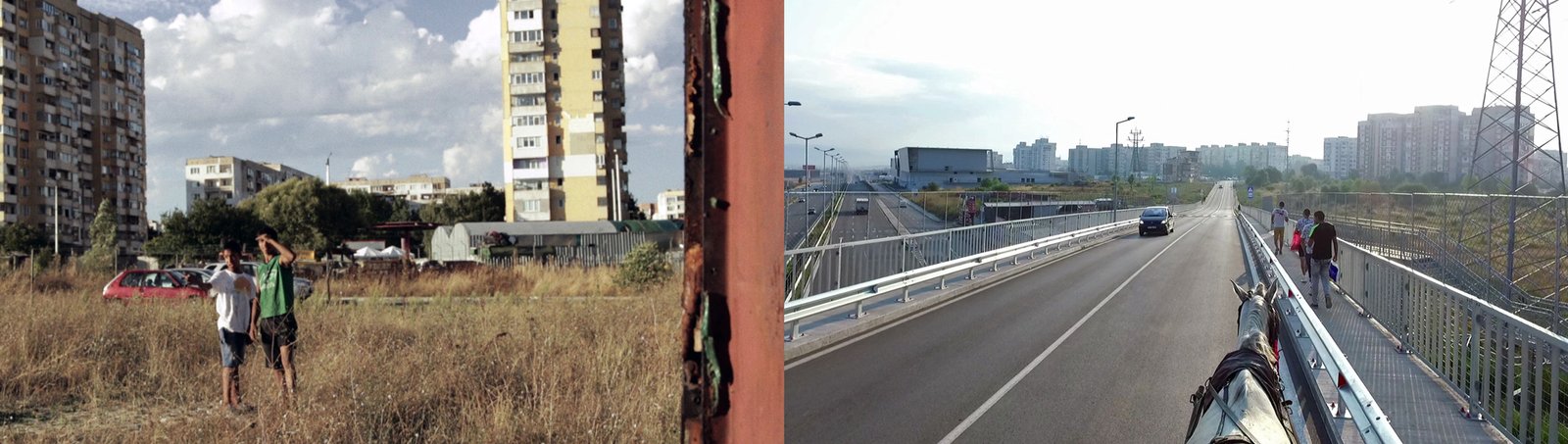 On the other hand these spaces are used by the residents of the bordering Roma settlements Fakulteta and Filipovtsi. A large number of horse carts start each morning from the mostly Roma populated village of Filipovtsi just outside the ring road, headed for Lyulin and all other districts of Sofia, collecting everything still usable or disposable from the waste bins in the streets. One of the signs for ecological responsibility of the newly joined European state of Bulgaria was adopting the model for waste separation. Despite the large number of private companies contracted by the municipality to do the service, the separation never worked smoothly. Rumours say that all different coloured waste bins end up in the same pot at the end. Yet these horse drivers, some of the poorest and “underdeveloped” people, under constant threat of being banned to move in the urban territory, seem to be the only ones capable of properly adopting this advanced ecological method of waste management. They truly separate anything plastic from metal, from paper, from other still usable objects, for every material has a different value at the disposal point. Yet their presence among the panel blocks - the ultimate modernist urban planning model - is striking. Going back and forth daily between the urban and non-urban, the horse cart maps the peripheral territory and reveals the kind of dynamics this way of transportation, labour, and movement creates in relation to the streets, the other vehicles, the people.