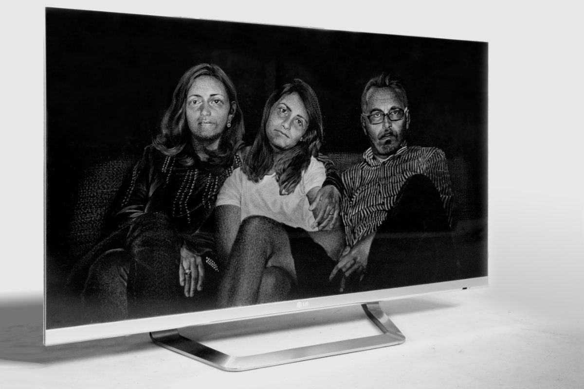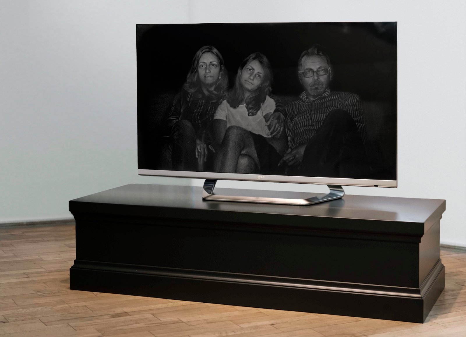 The series Monument to the Time Elapsed re-appropriates some of my no longer functional devices (laptop, tablet, TV set) in a way that is completely inappropriate for information technology gadgets. On the screen of each piece of dead equipment is engraved an image of the supposed reflection of its user. During its life every gadget displayed myriad of flickering ephemeral images, but in the end of the day the only stable image that remained on the surface is the image of the user. The black screen turns out to be a perfect surface for engraving - a technique resembling in many ways the current fashion in the design of tombstones in todays Christian Orthodox world, where the portraits (or sometimes full size figures) of the deceased are engraved on the surface of black granite stones used for the make of tombstones.