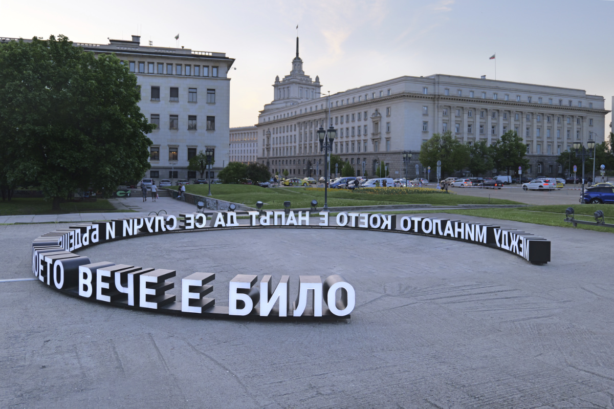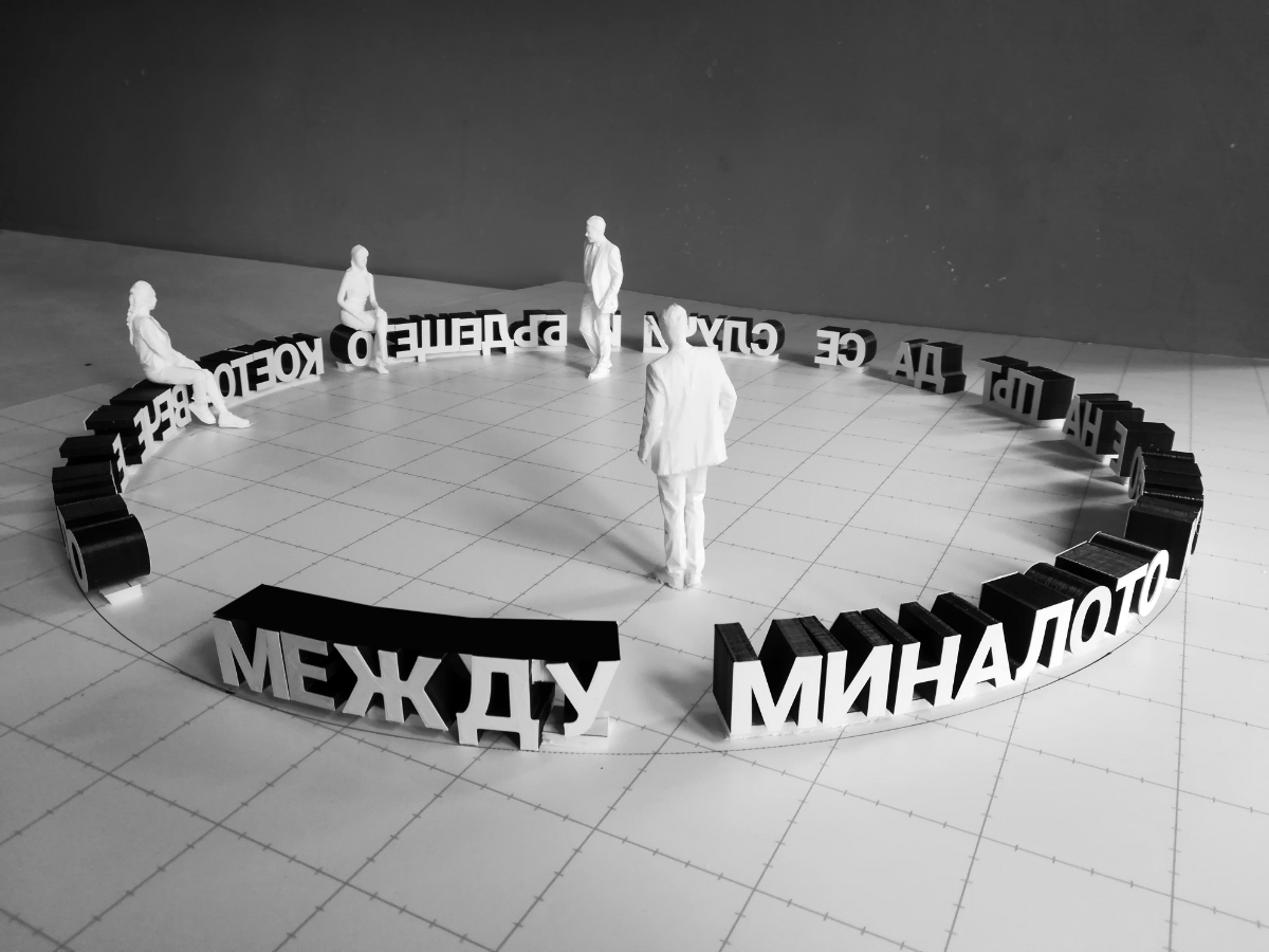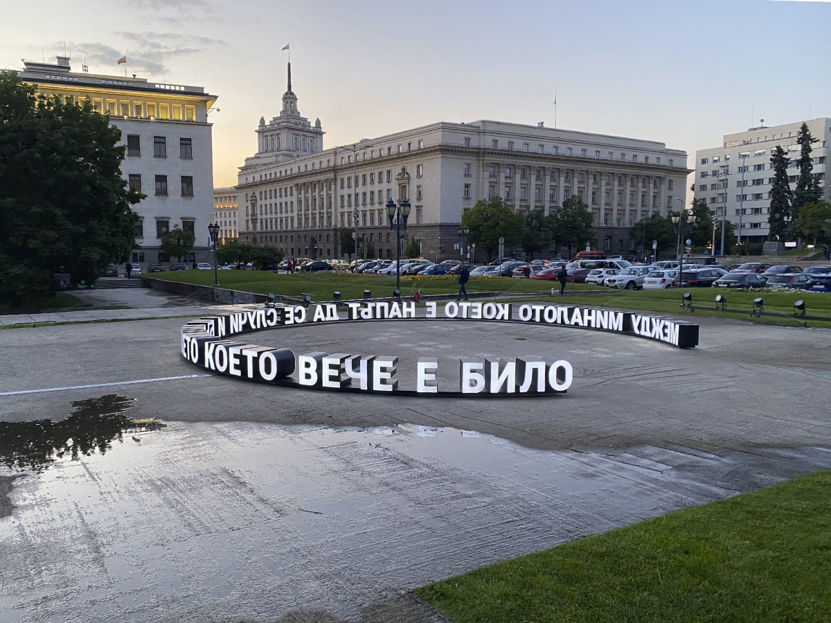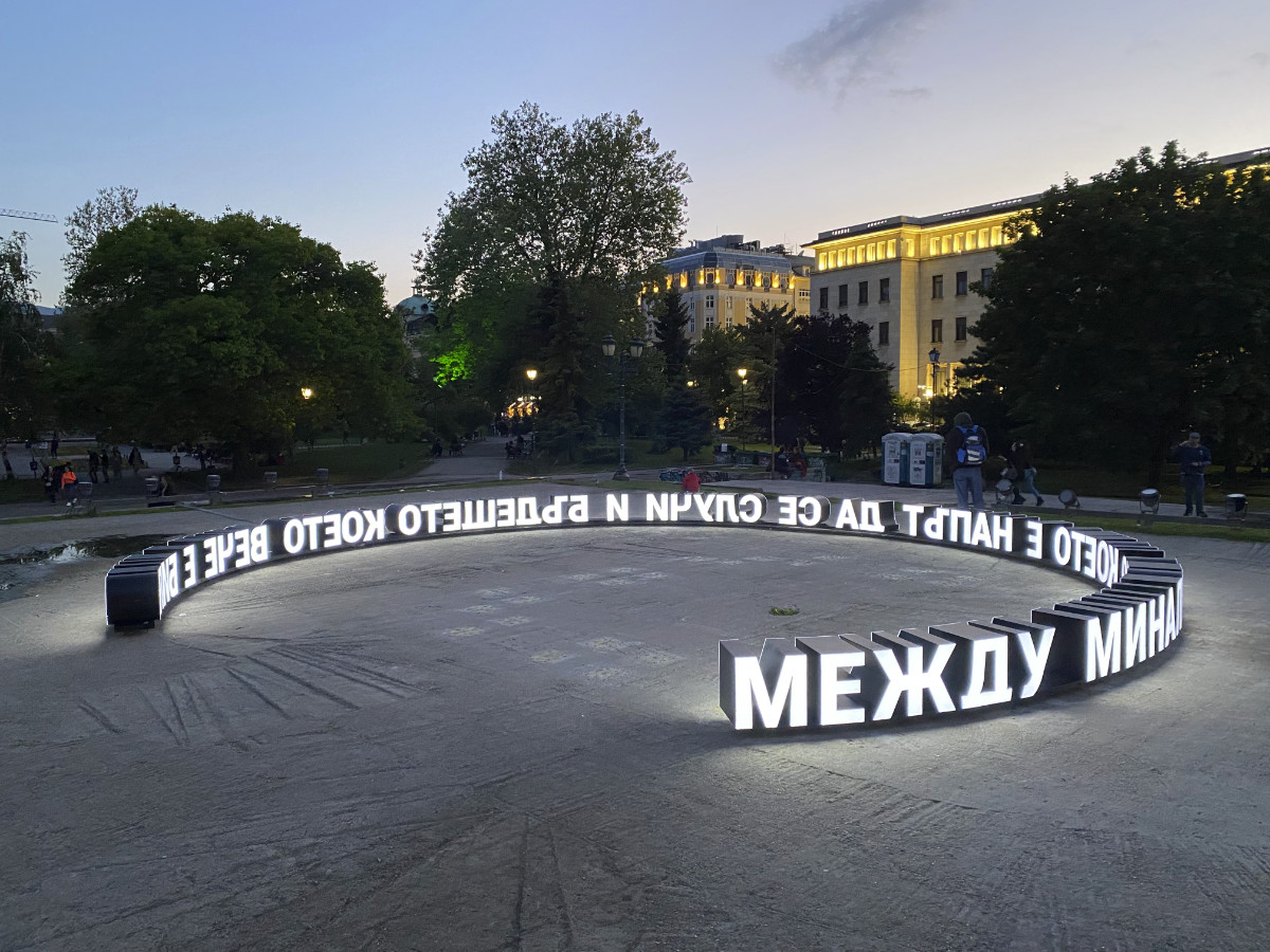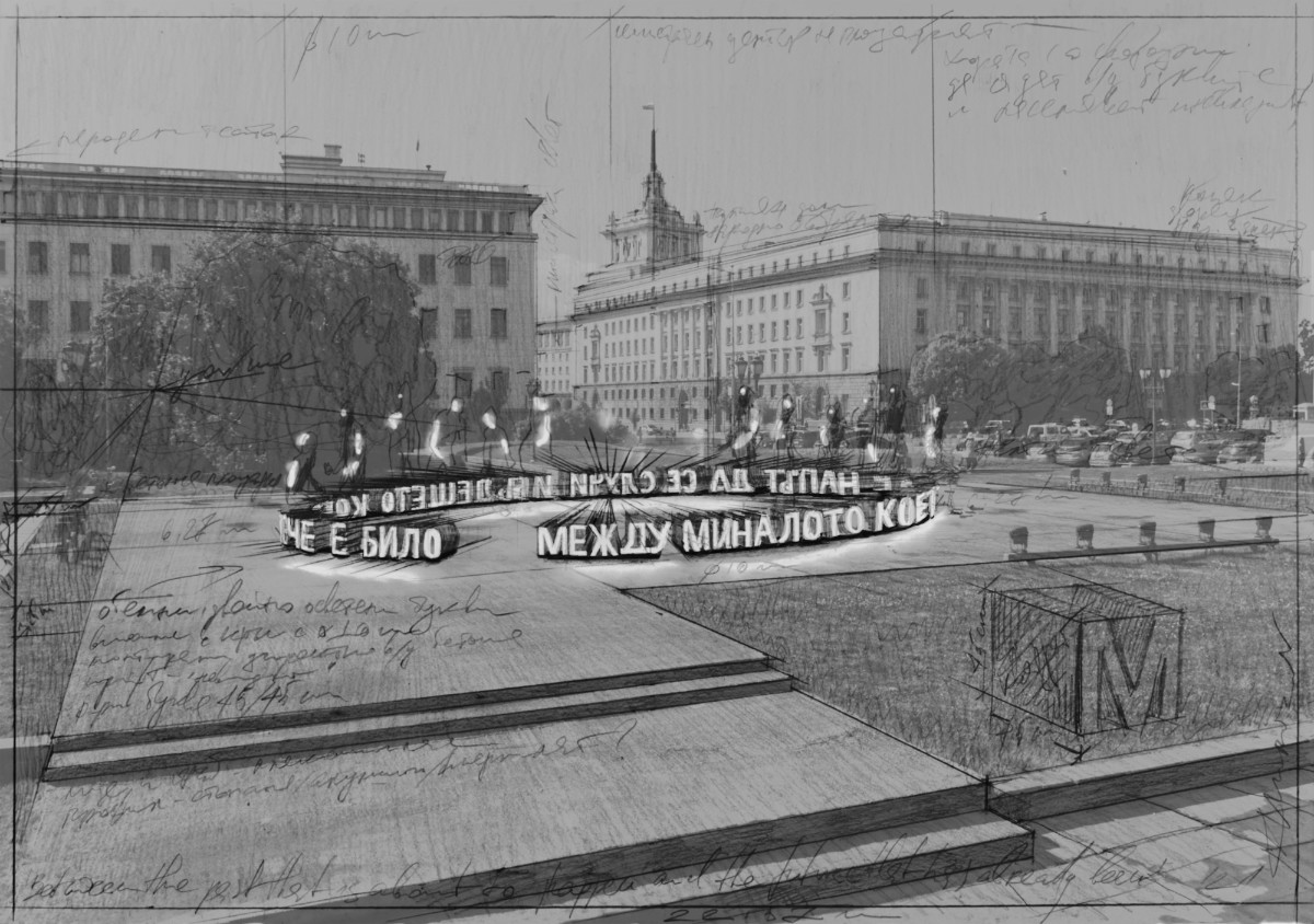 "Between the past that is about to happen and the future that has already been" is an art installation on the site of the former mausoleum of Georgi Dimitrov in the center of Sofia. It is related to the special symbolic significance of this place, which has left its mark on the city. But it is also addressed to visions of the future, in which we are not just the audience of monumental spectacles.